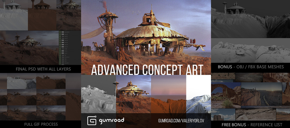 Workflow of creating concept art based on real 3D geometry which could be rendered in a lot of render programmes, including Photoshop is shown in this product.